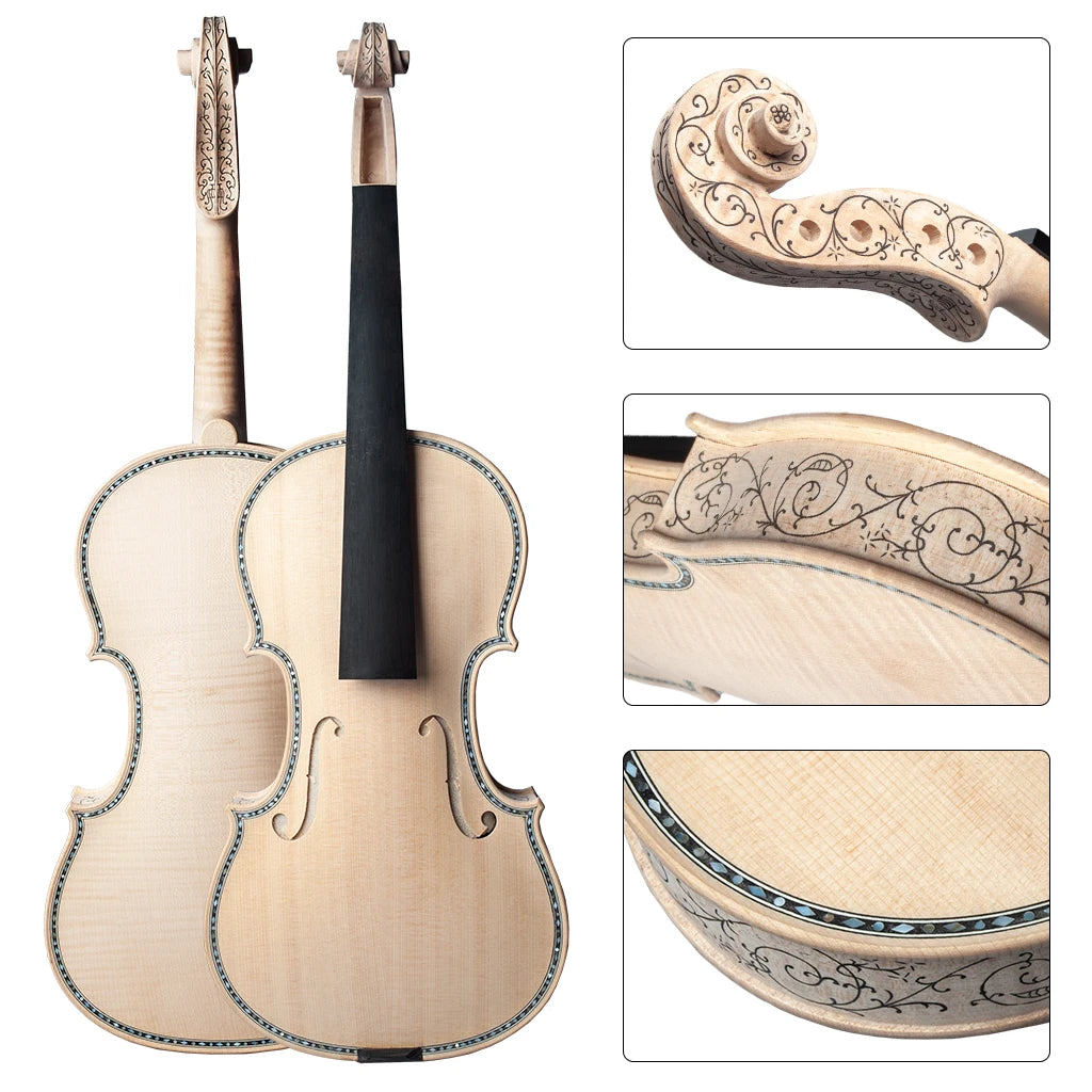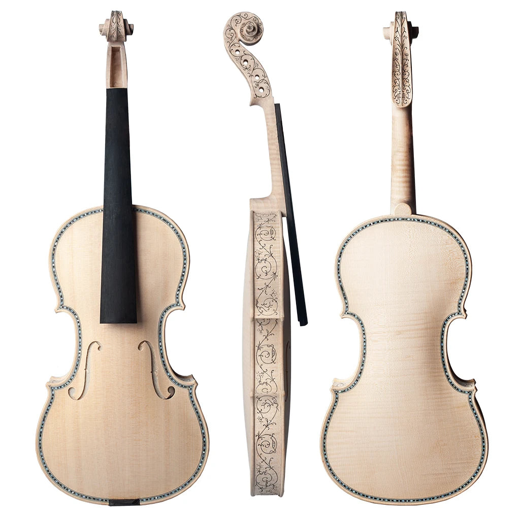 4/4 Unfinished European Wood Handmade Violins Unusual Highly Decorative Inlay c. 1679 Hellier Style Stradi Oil Finish Violin